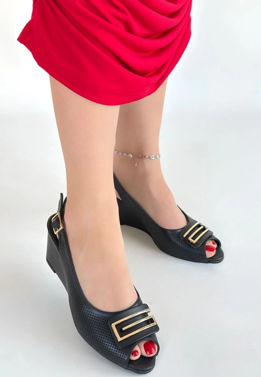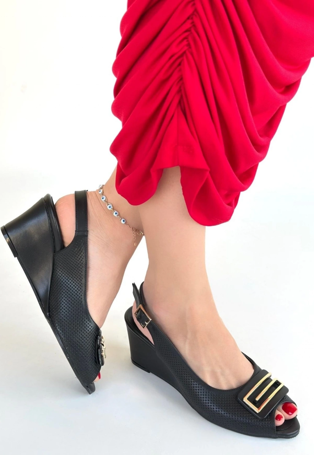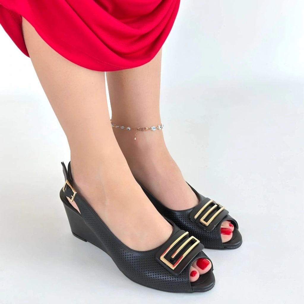 Mamba Siyah Cilt Dolgu Topuk Ayakkabı