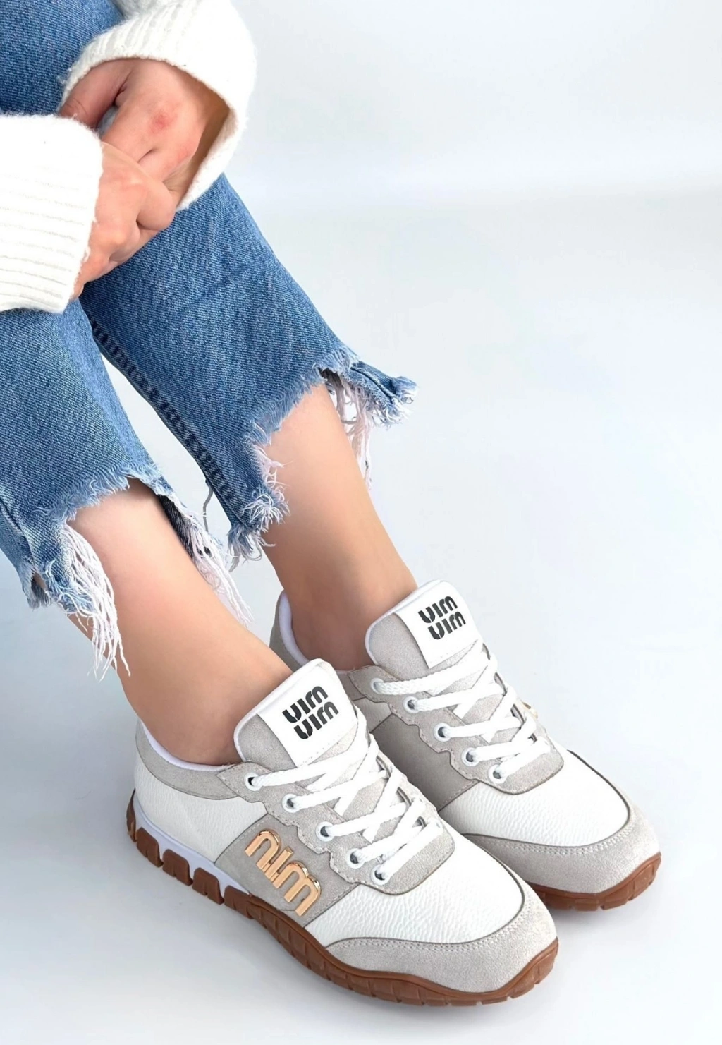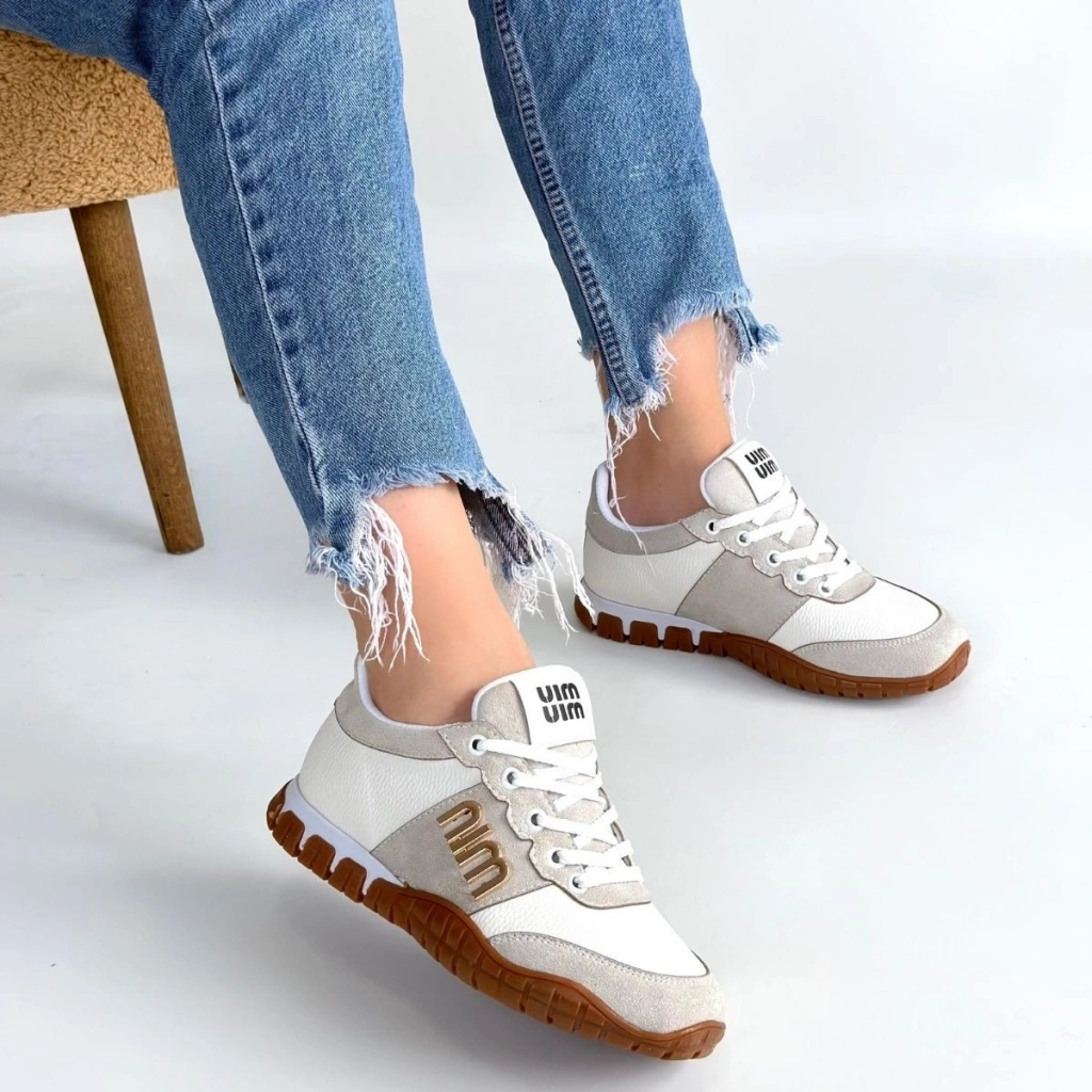 Rimay Beyaz Cilt Boncuk İşlemeli Spor Ayakkabı