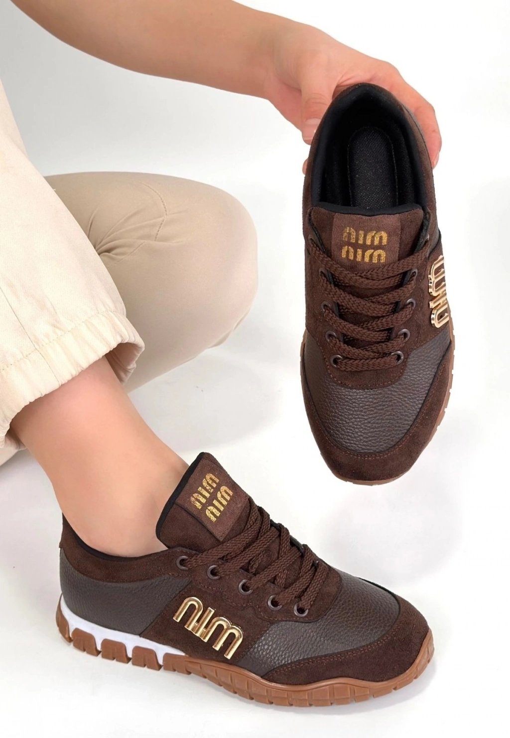 Feort Bej Triko Bağcıklı Spor Ayakkabı