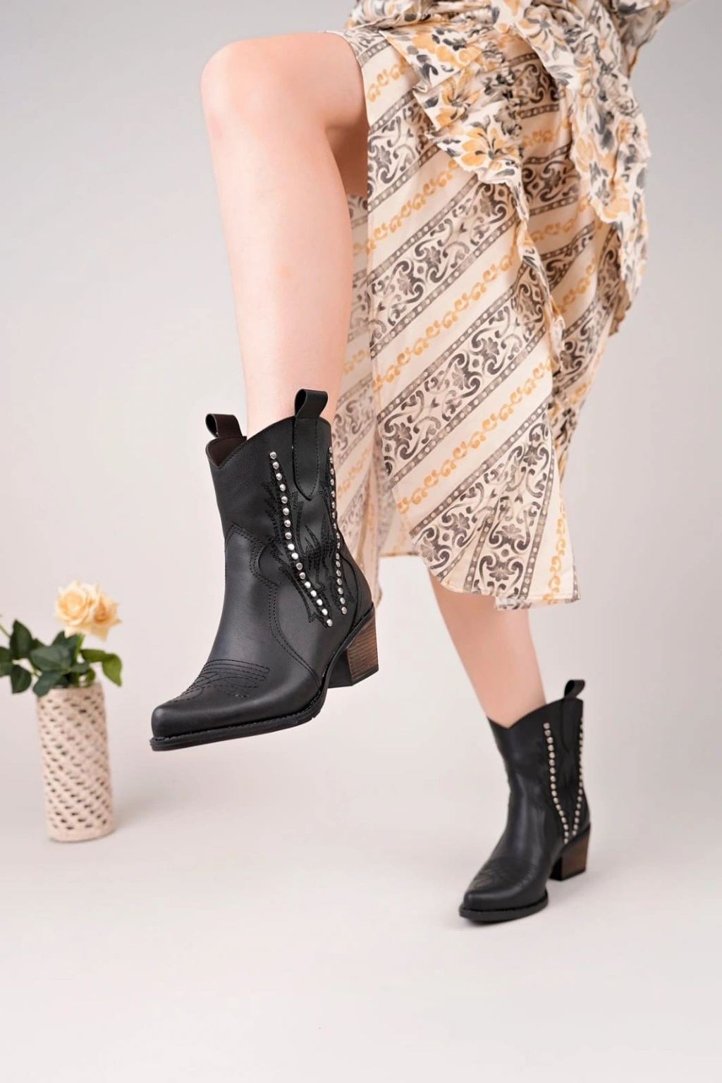 Kanda Siyah Cilt Topuklu Bot