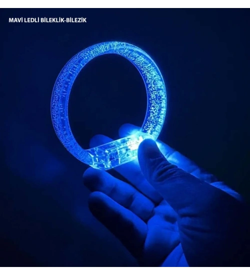 Mavi Led Işıklı Baskı Yapılabilen Pilli Bileklik Bilezik 1,5 cm Genişlik