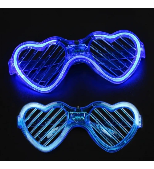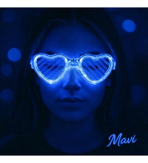 Mavi LED Işıklı Kalp Gözlük – 3 Modlu Parti