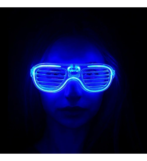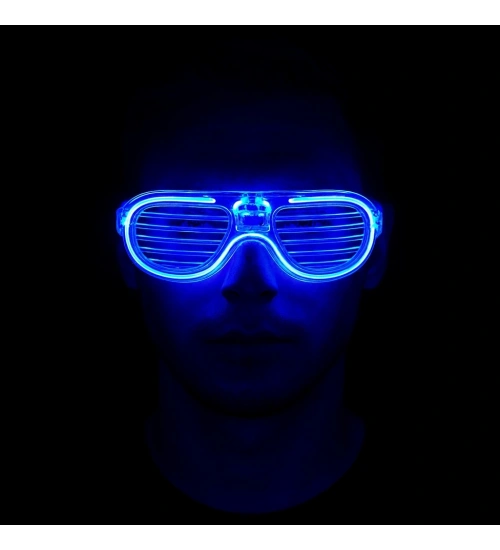 Mavi Led Işıklı Parti Gözlüğü - Neon Glow Şerit Gözlük 3 Modlu