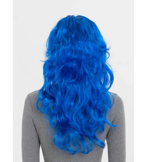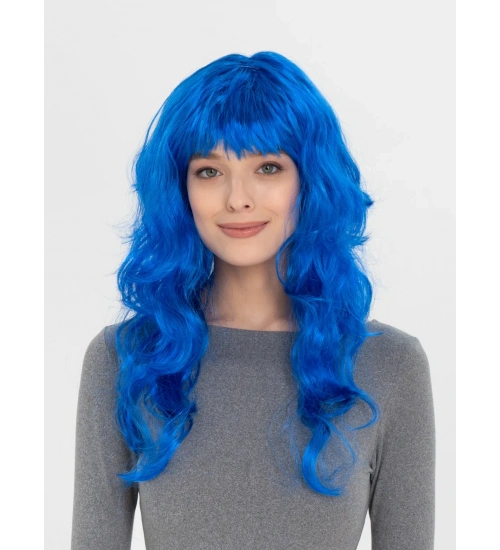 Mavi Renk Uzun Dalgalı Parti Peruğu