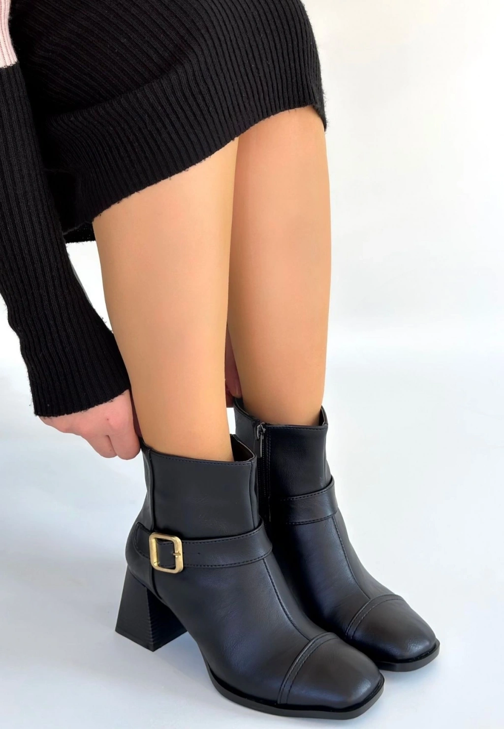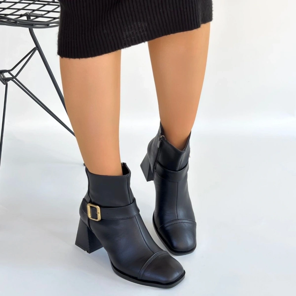 Kanda Siyah Cilt Topuklu Bot