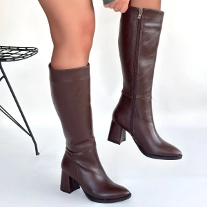Detay: Topuklu Yandan Fermuarlı Diz Altı Çizme