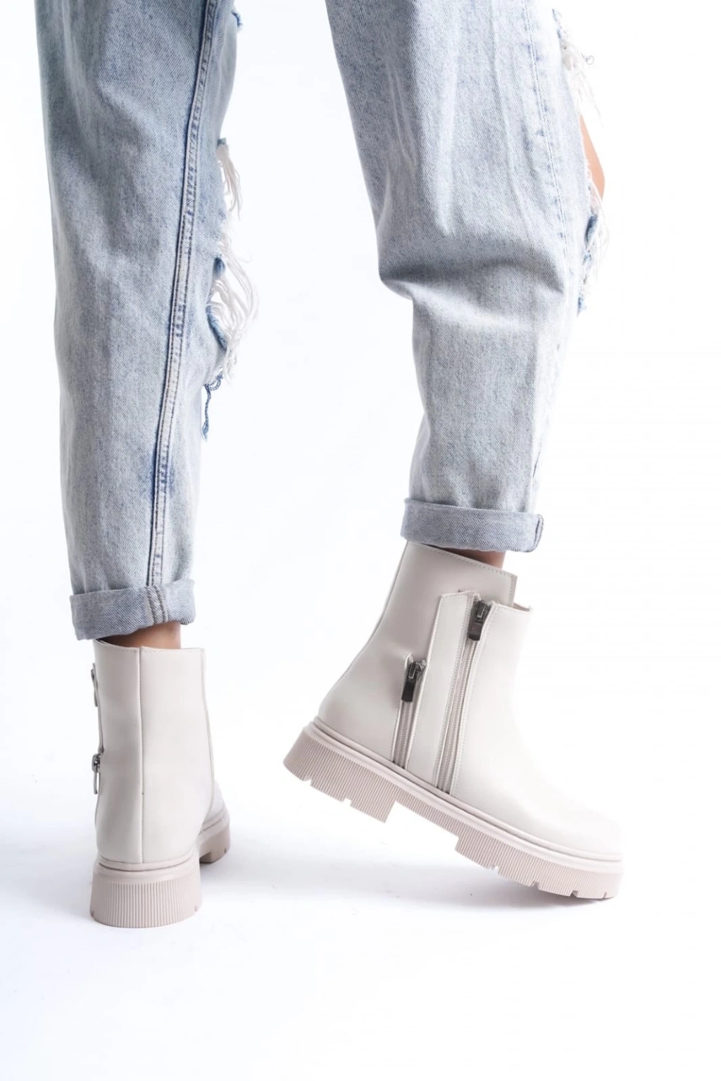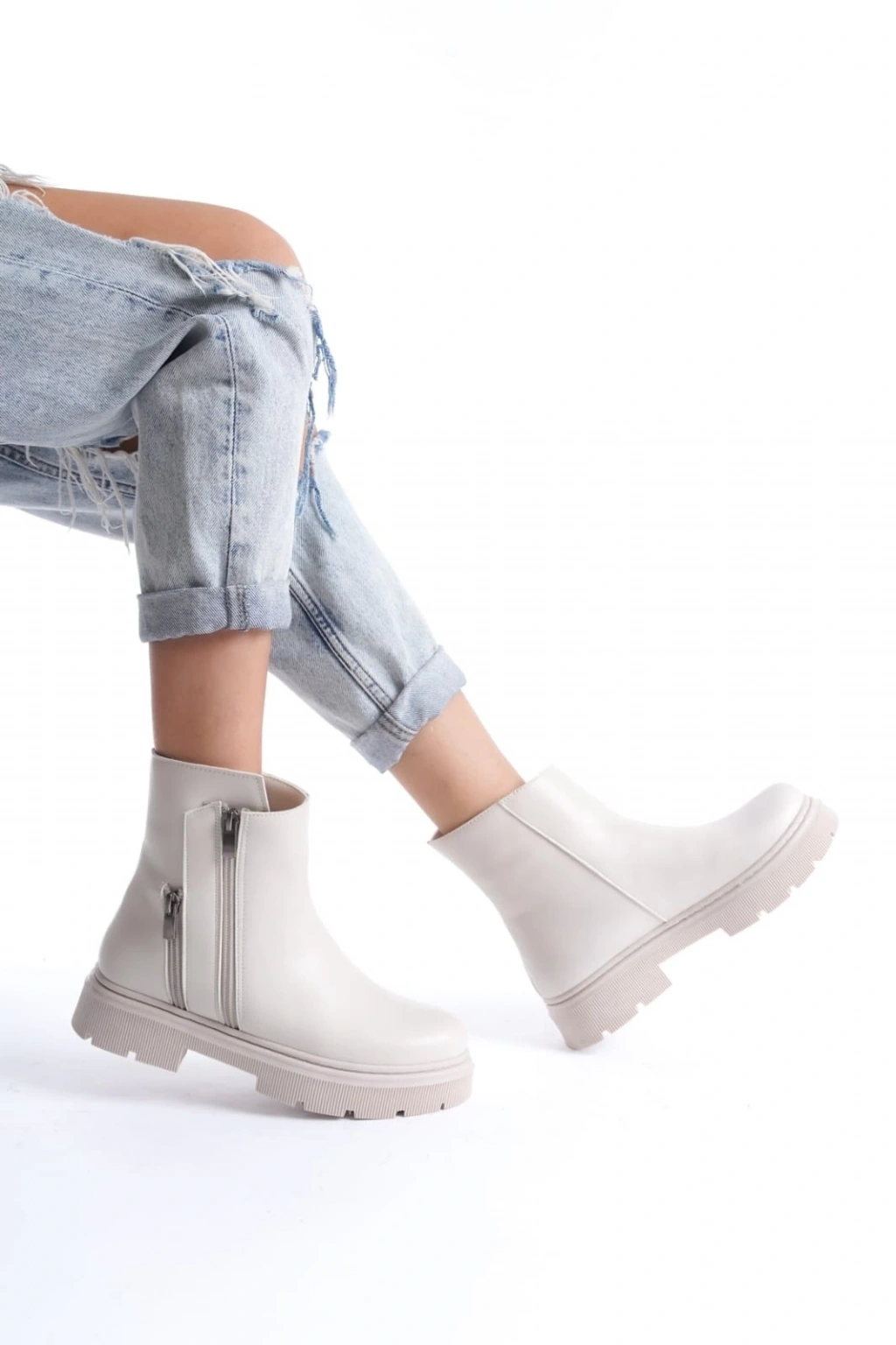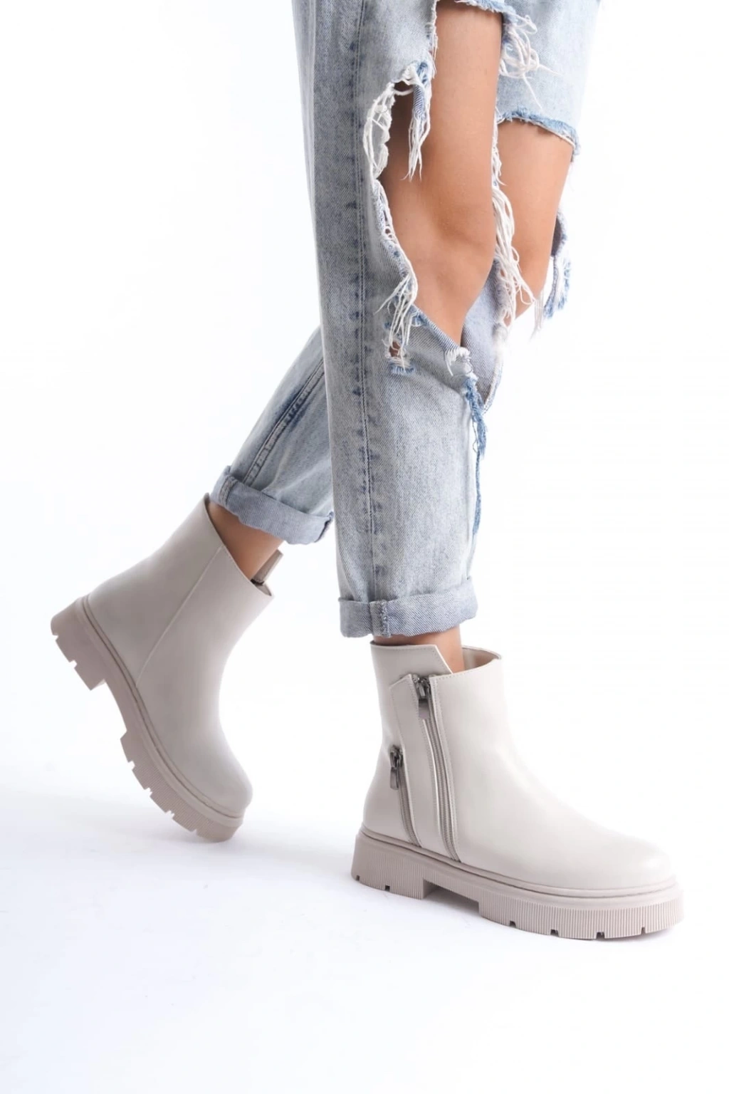 Menta Bej Cilt Fermuar Aksesuarlı Bot
