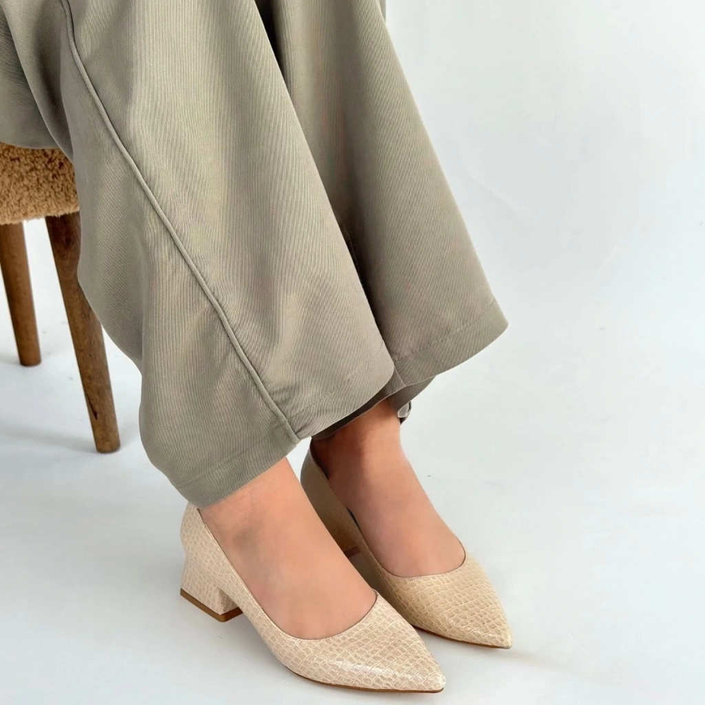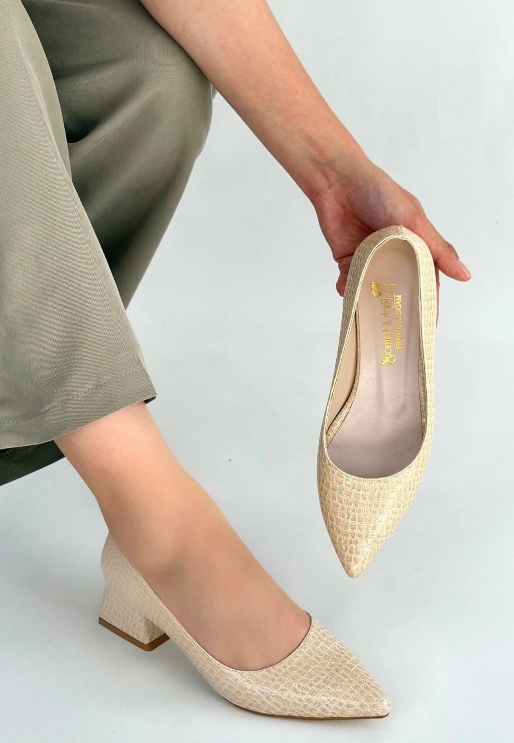 Nitya Bej Baskılı Rugan Topuklu Ayakkabı