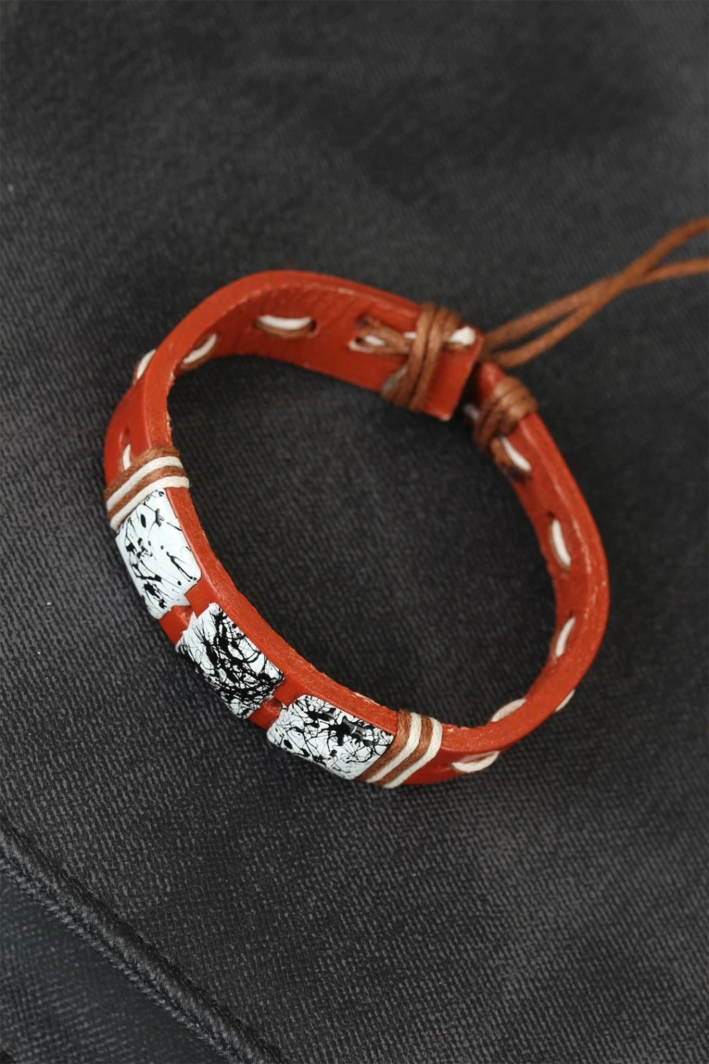 Spor şıklığı Mermer Taşlı Kahverengi Deri Erkek Bileklik ile en trend şekilde yakalayacaksınız.