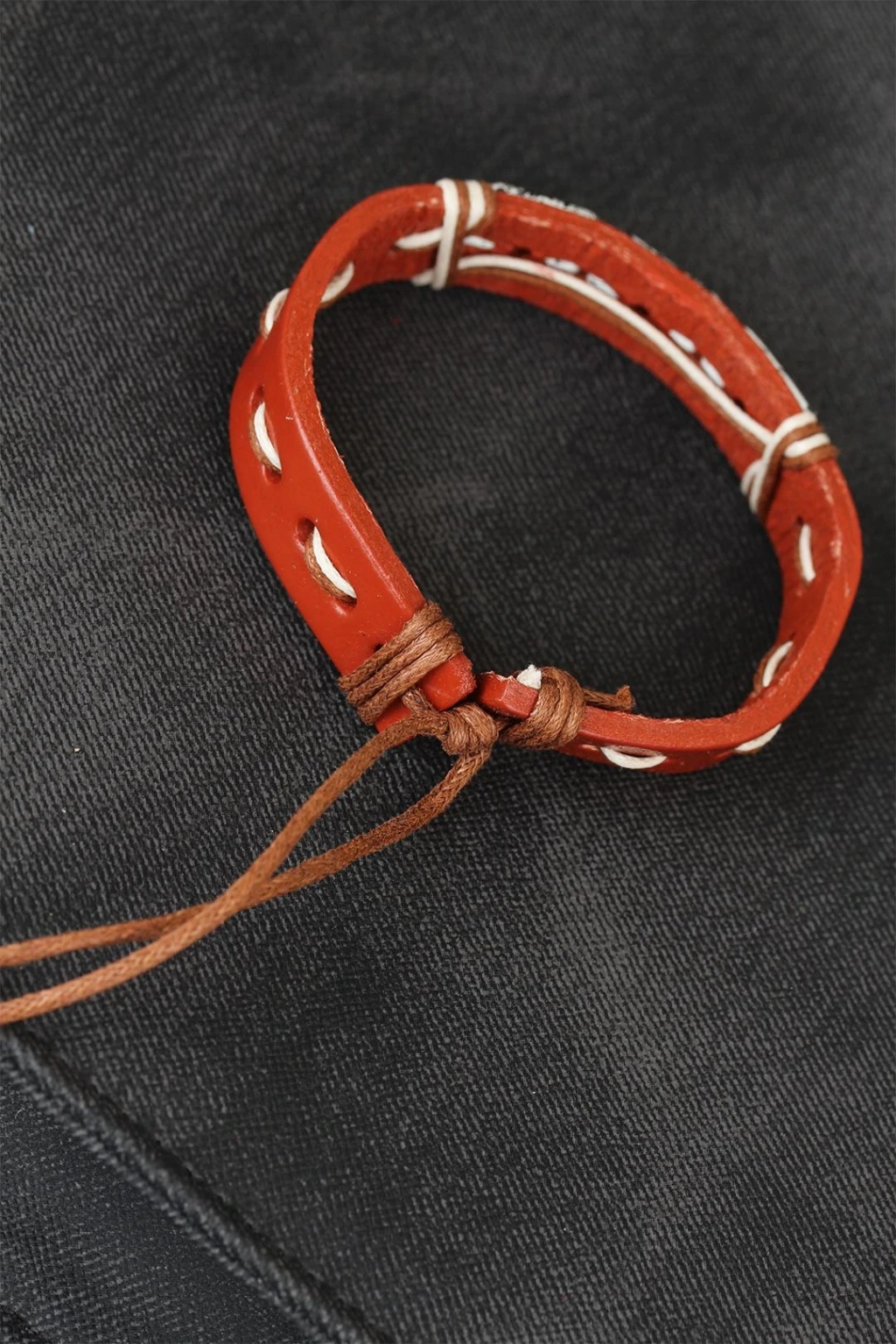 Sarı Renk Zımbalı Deri Erkek Bileklik Kombini