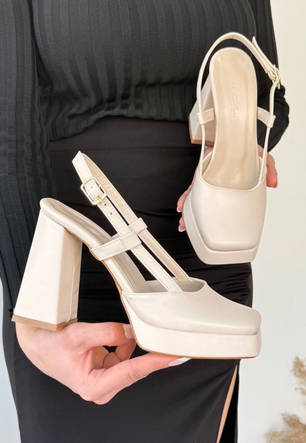 Jarlo Bej Cilt Dolgu Topuk Ayakkabı