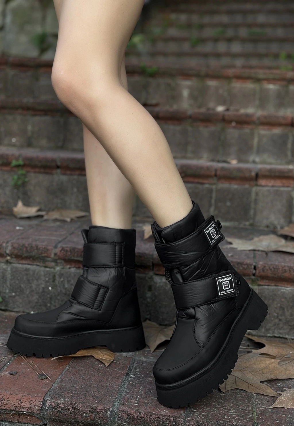 Linma Siyah Nubuk Bağcıklı Topuklu Bot