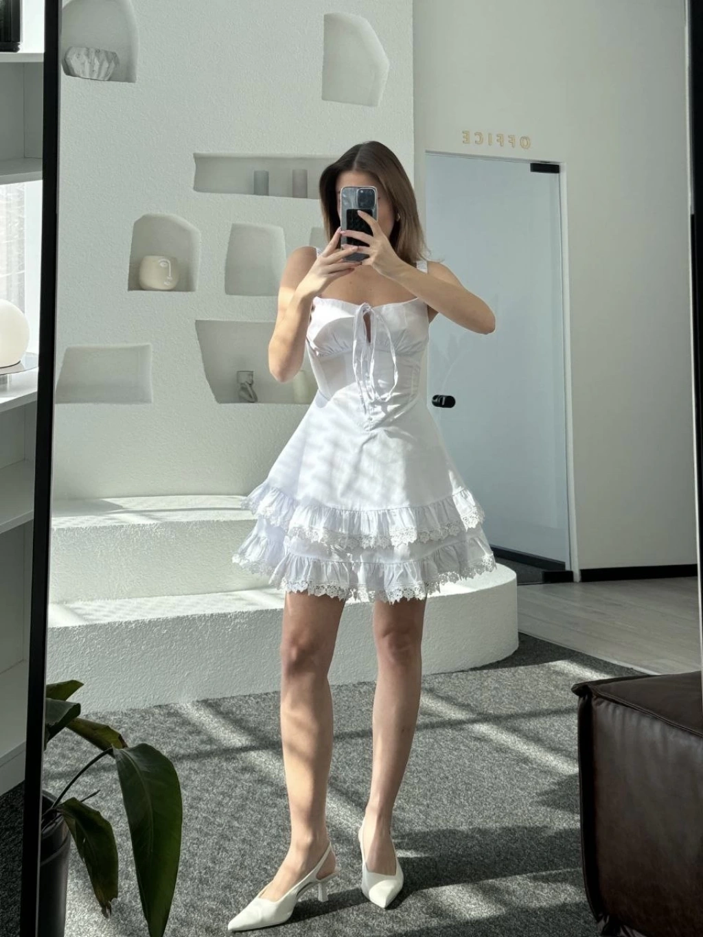 Kadın Beyaz Kısa Kollu Arkası Yırtmaçlı Uzun Elbise + İç Göstermeyen Askılı Mini Elbiseli - Beyaz