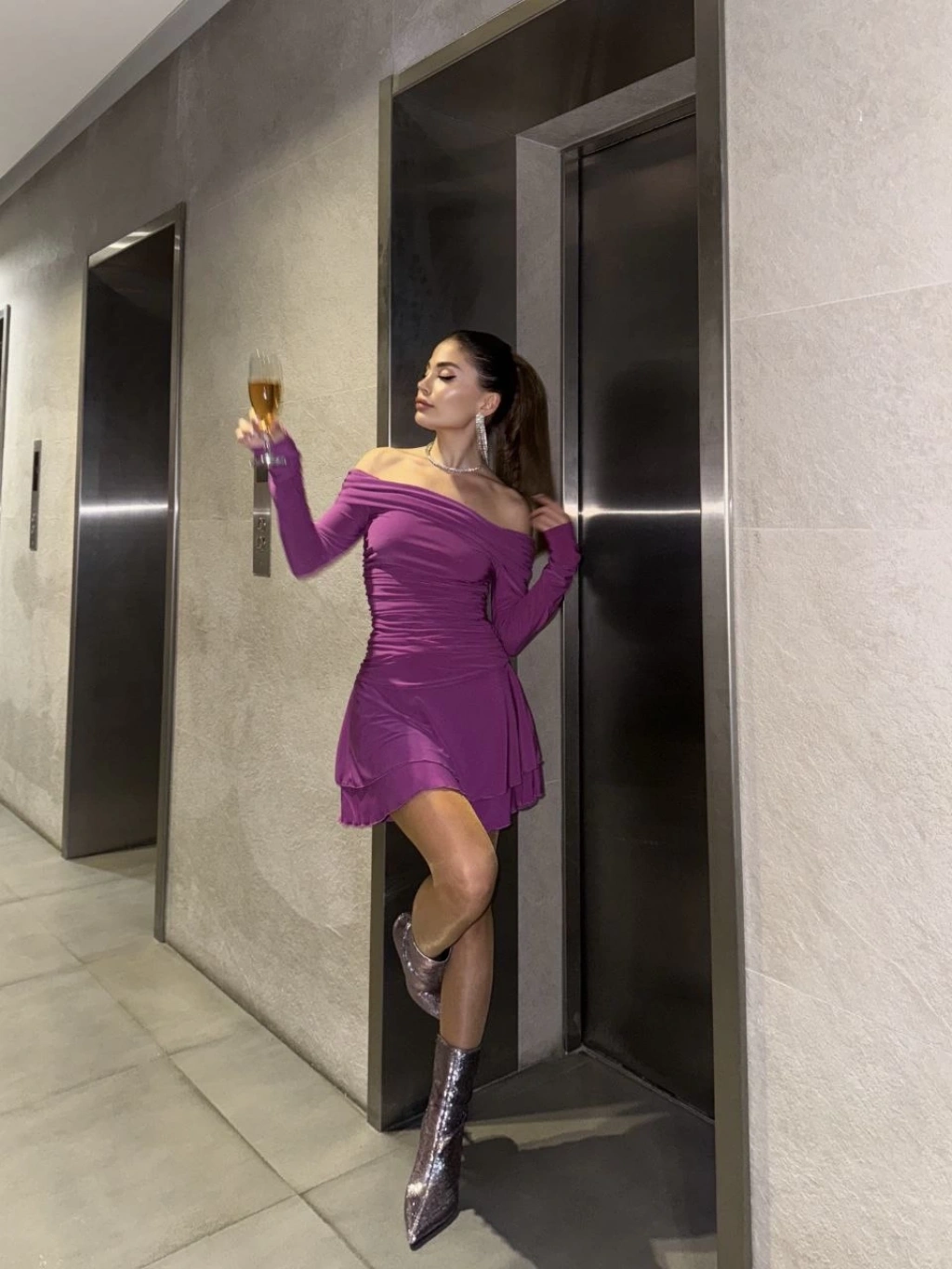 Sırt Dekolteli Kolsuz Uzun Elbise - Mürdüm