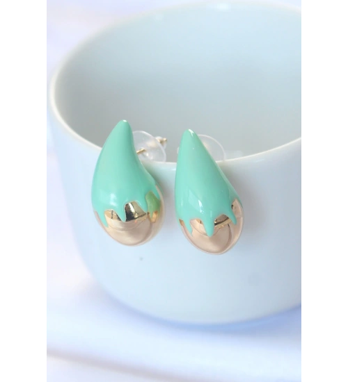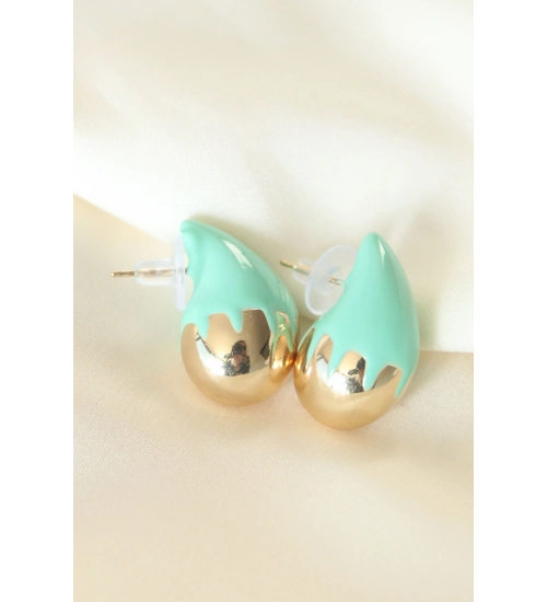 Minimal Turkuaz Mineli Çift Renk Damla Küpe