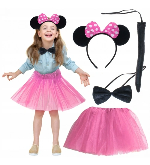 Minnie Kostüm Seti (Pembe Tütü Etek + Pembe Taç + Papyon + Kuyruk)