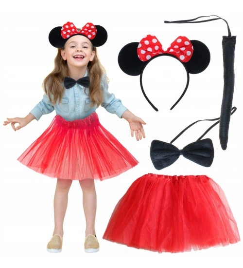 Minnie Mouse Kostüm Seti Etek Taç Kuyruk Papyon Gösteri Seti