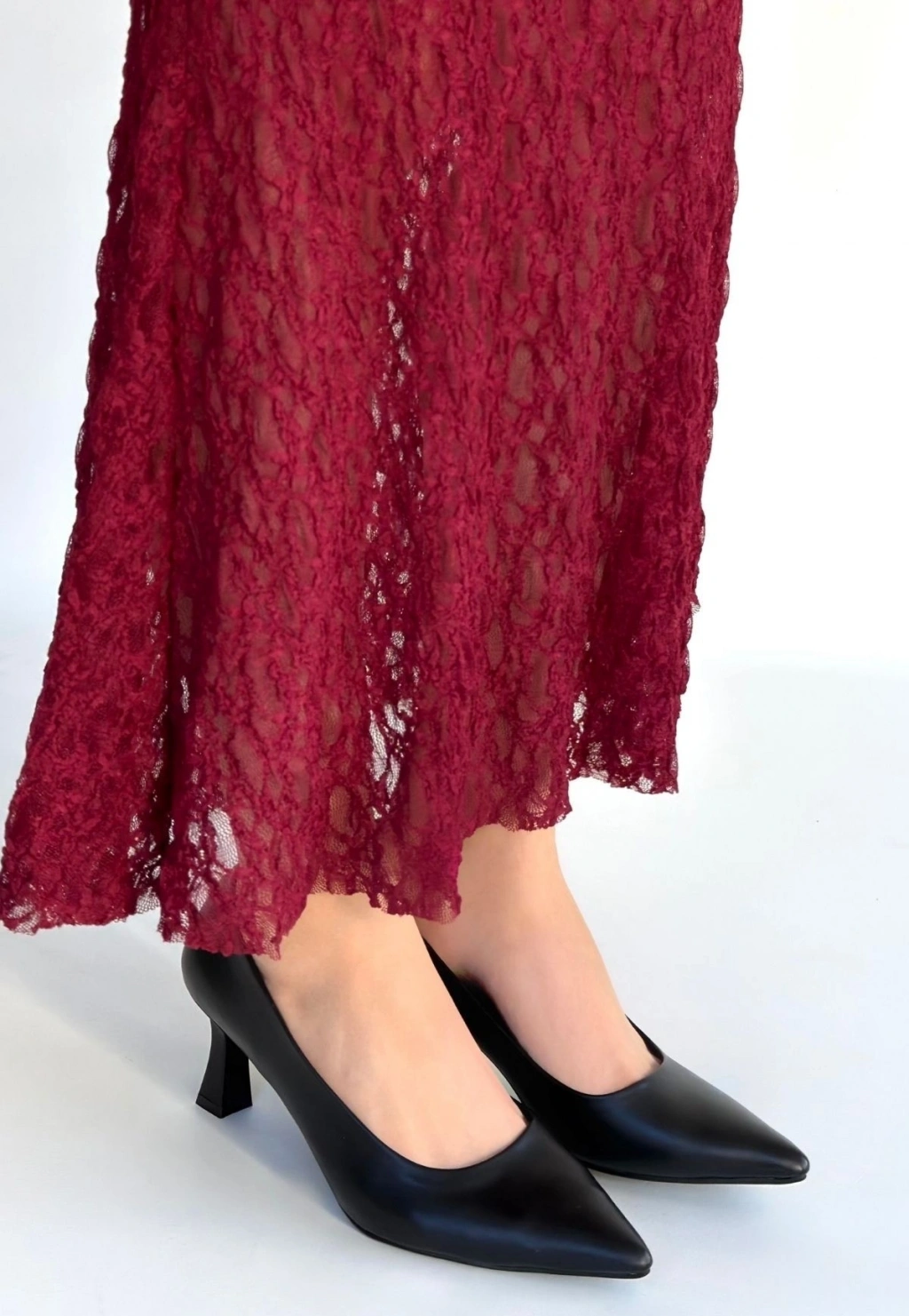 Ferla Siyah Cilt Topuklu Ayakkabı
