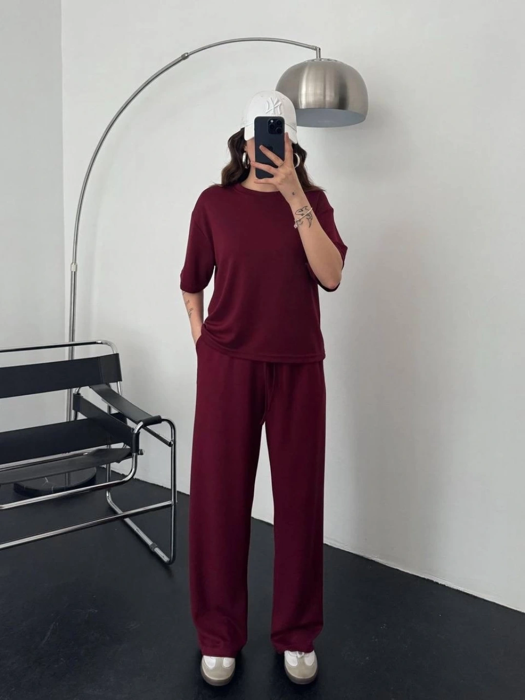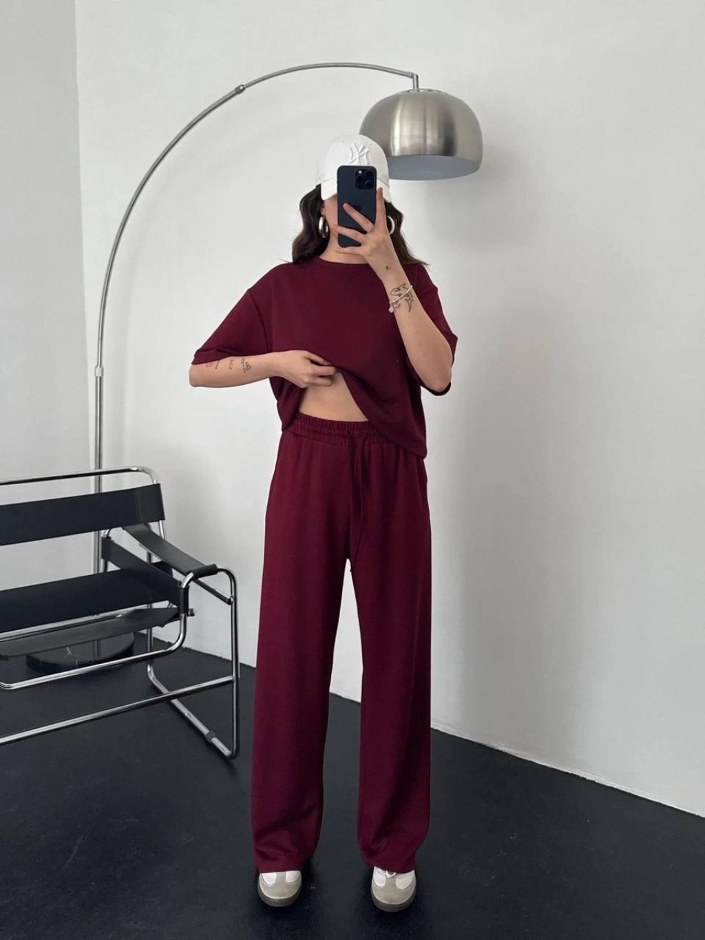 Modal alt üst takım, şık ve rahat bir kombin sunar.