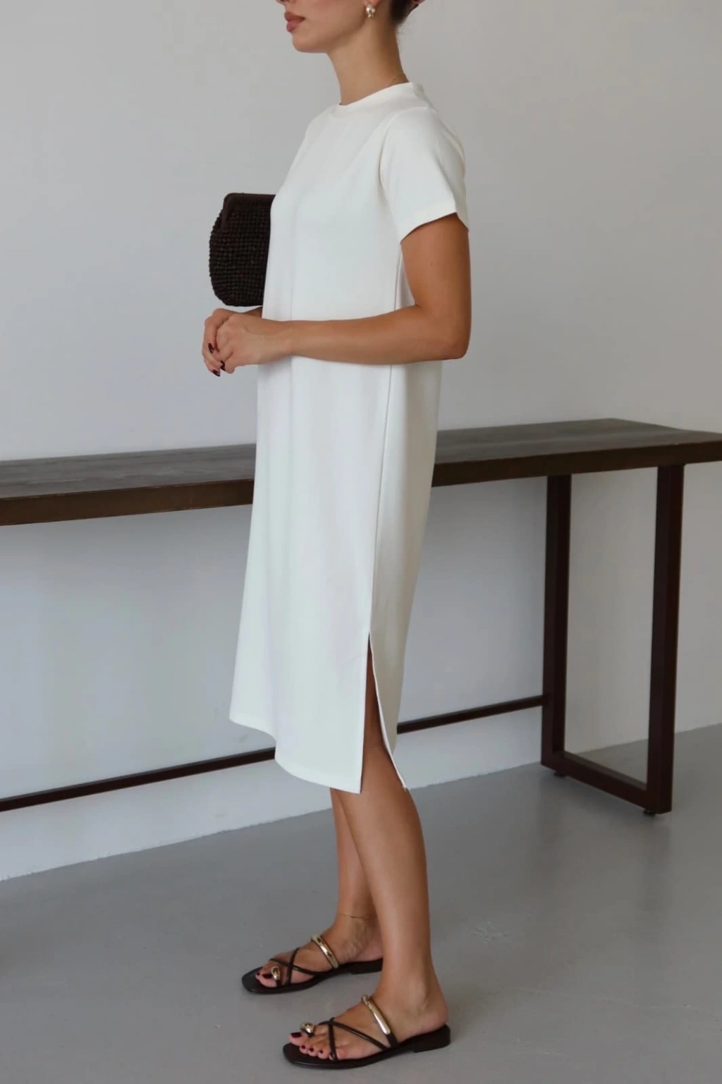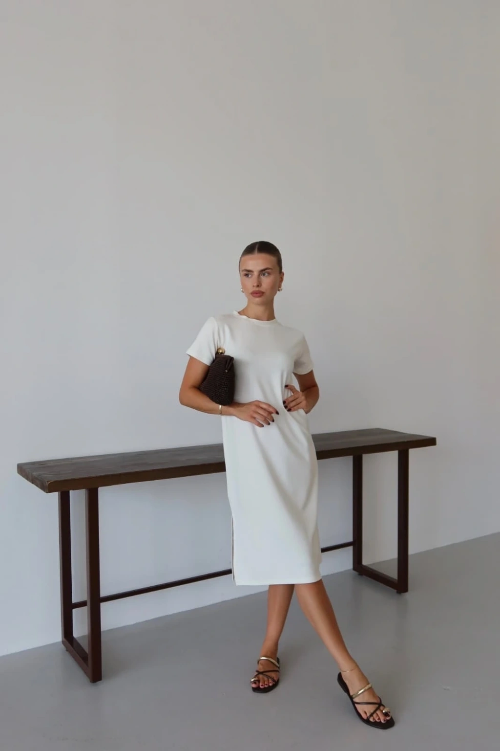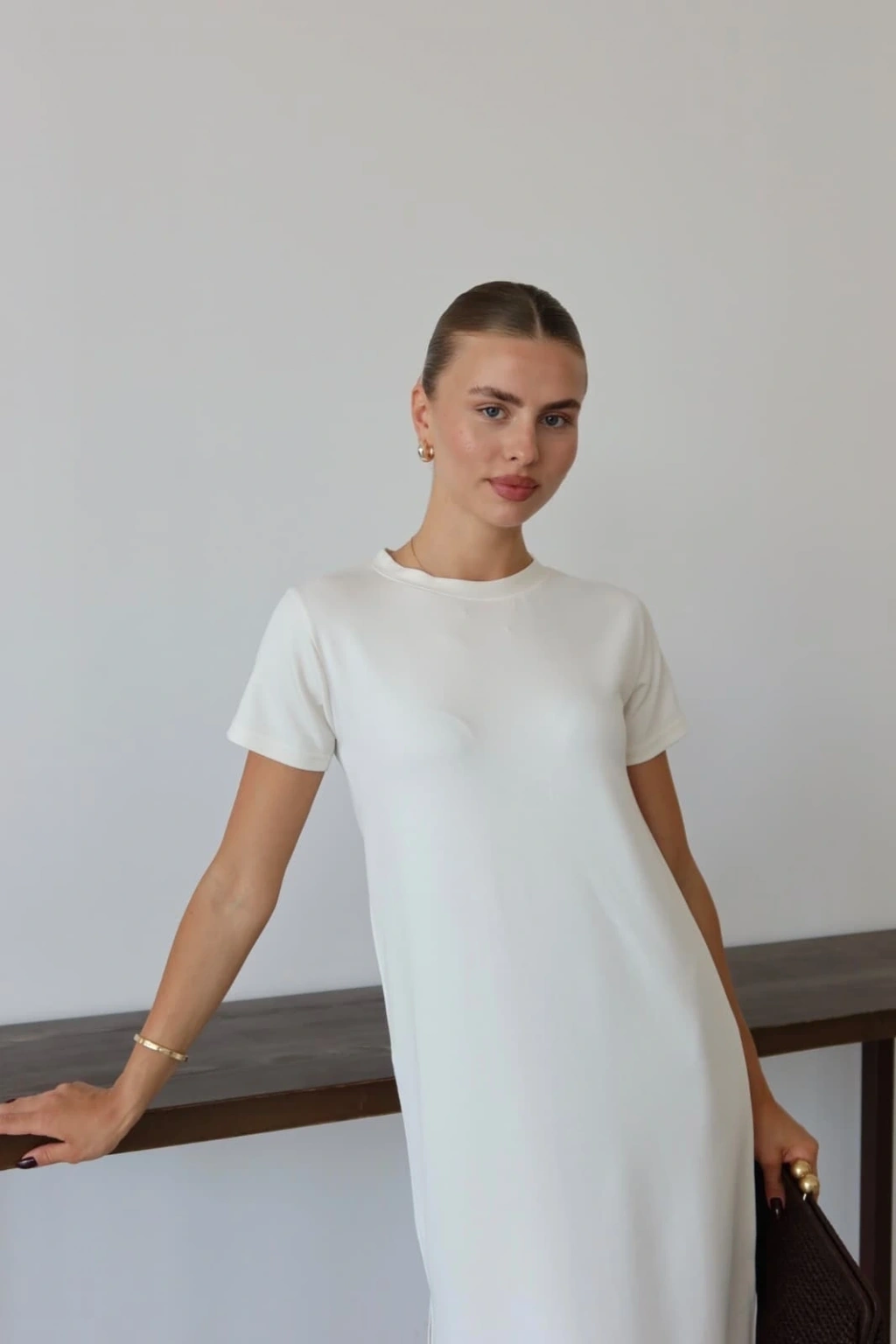 Kısa kollu müslin elbise beyaz pt