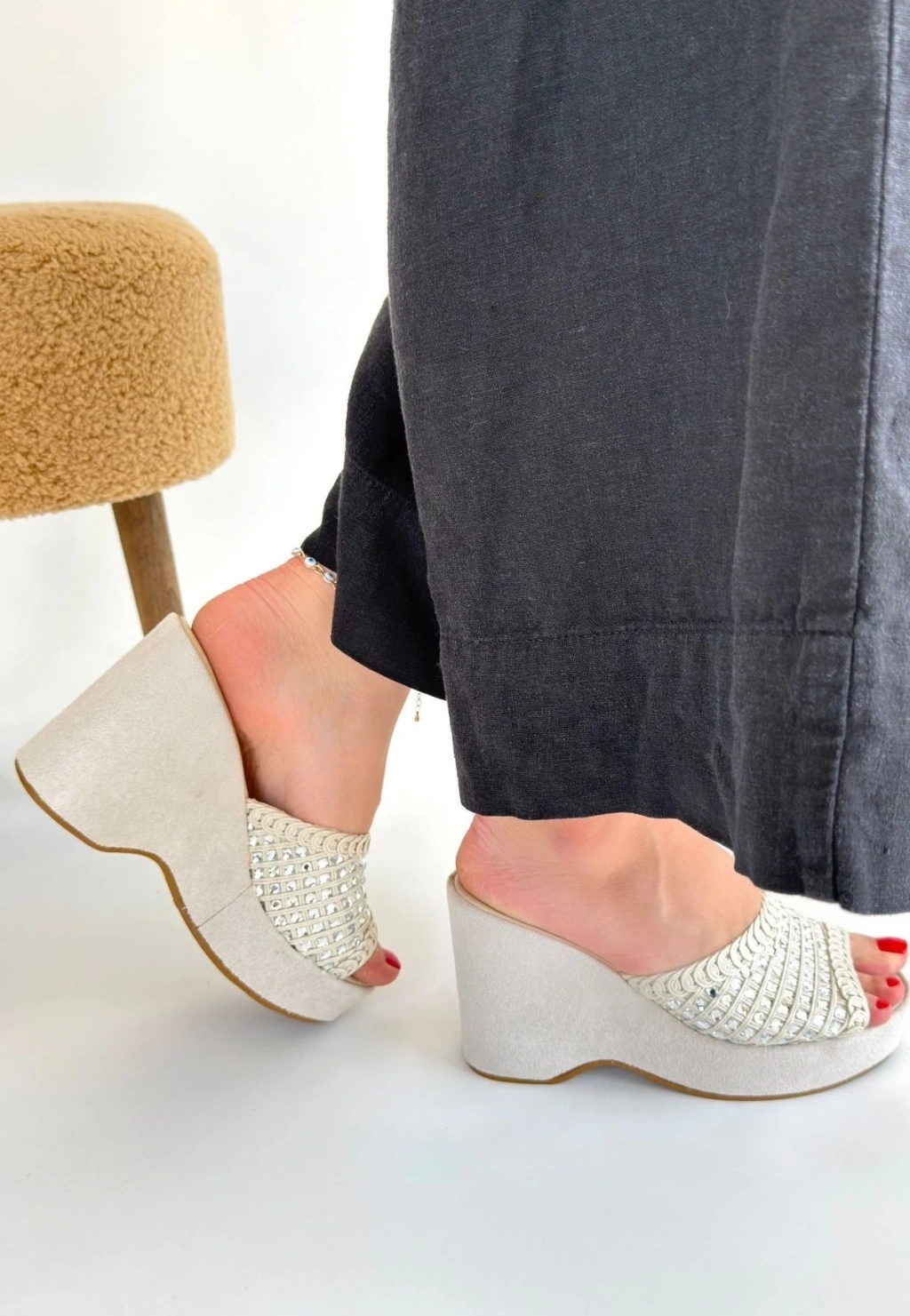 Moka Bej Triko Dolgu Topuk Terlik