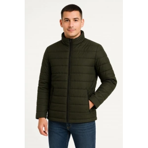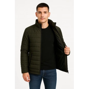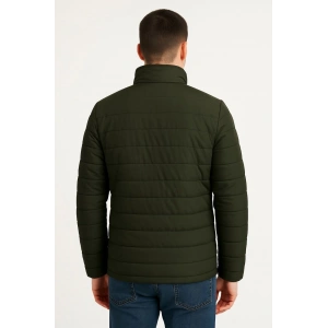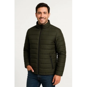 ERKEK ŞİŞME KAPÜŞONLU FERMUARLI MONT SU İTİCİ KAPİTONE ASTARLI KUMAŞ CEPLİ KIŞLIK RAHAT KALIP - HAKİ