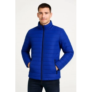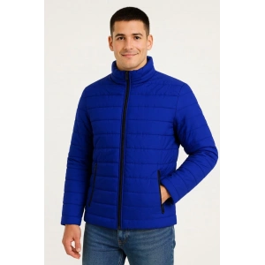 ERKEK ŞİŞME KAPÜŞONLU FERMUARLI MONT SU İTİCİ KAPİTONE ASTARLI KUMAŞ CEPLİ KIŞLIK RAHAT KALIP - SAKS MAVİSİ