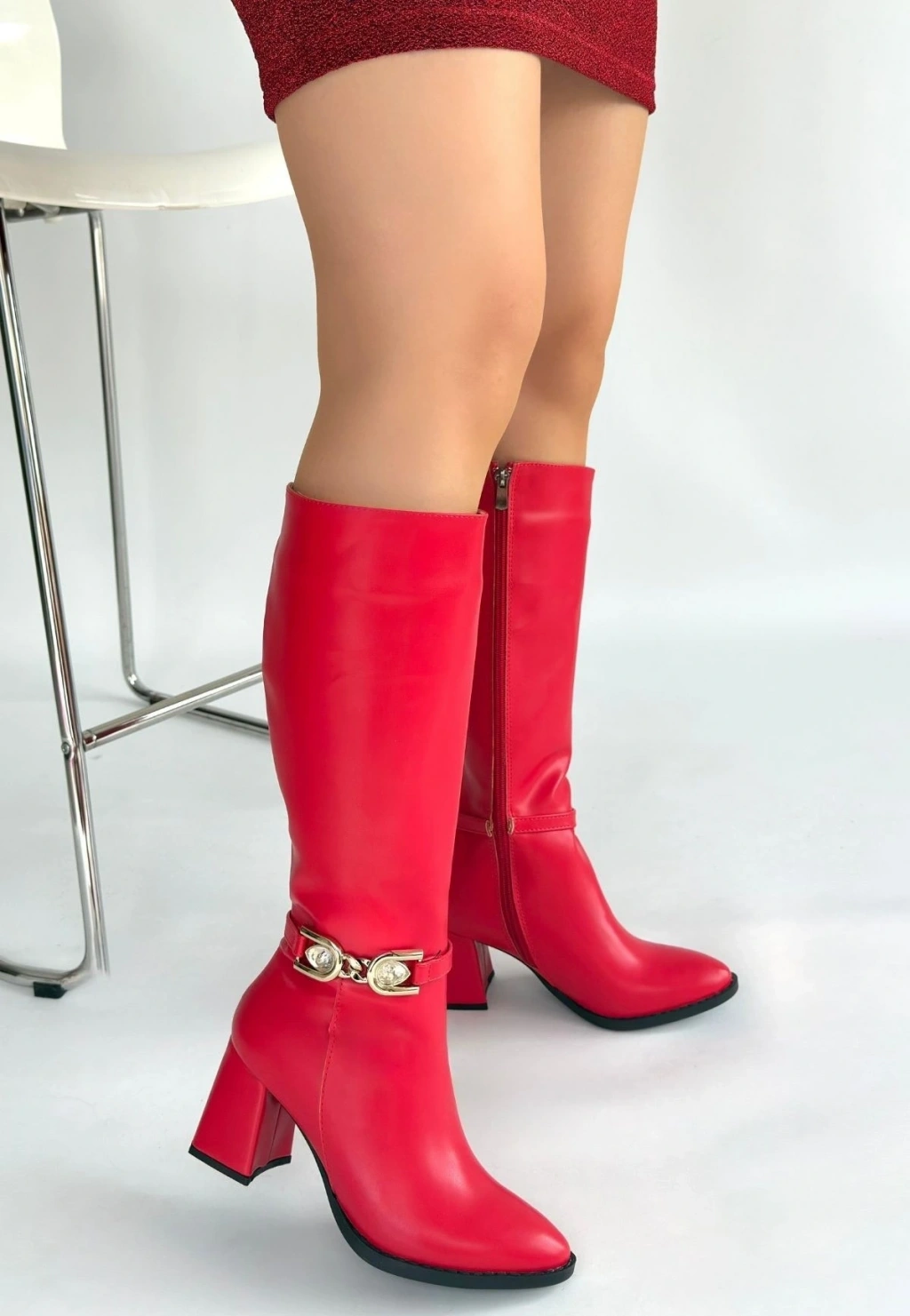 Tiyan Kahverengi Cilt Topuklu Çizme