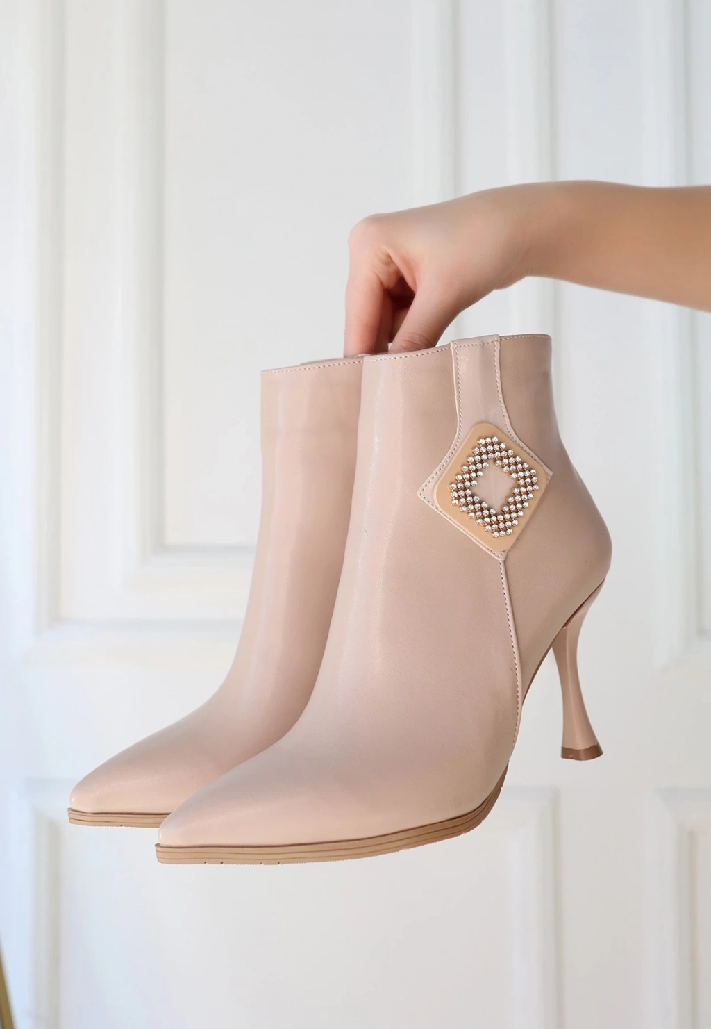 Jones Bej Cilt Bağcıklı Topuklu Bot