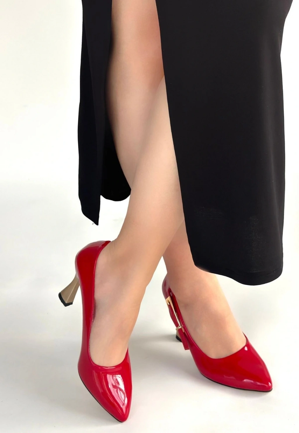 • Motya Kırmızı Rugan Topuklu Ayakkabı