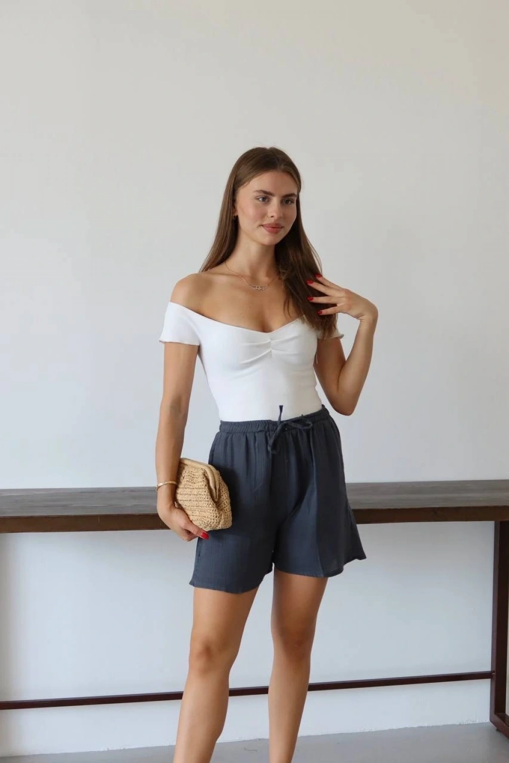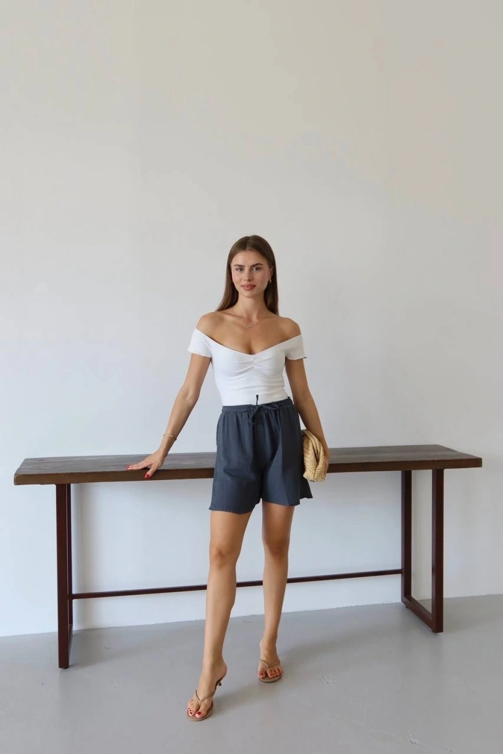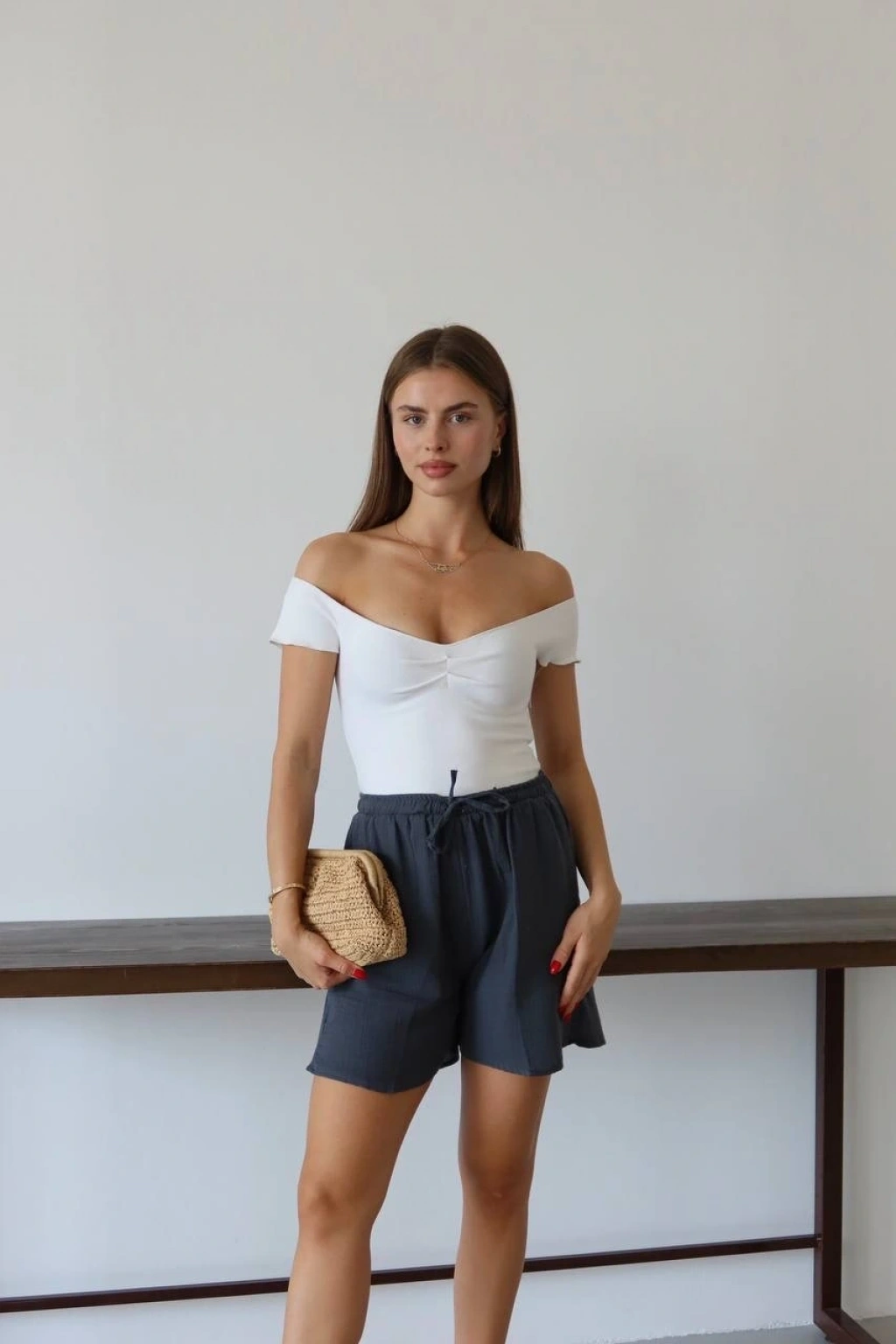 Kapaklı kaşe şort etek siyah beyaz kazayağı h261218