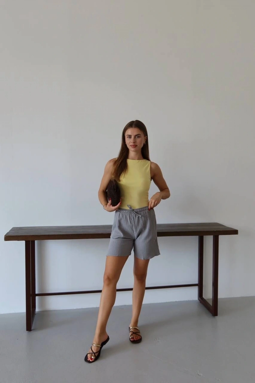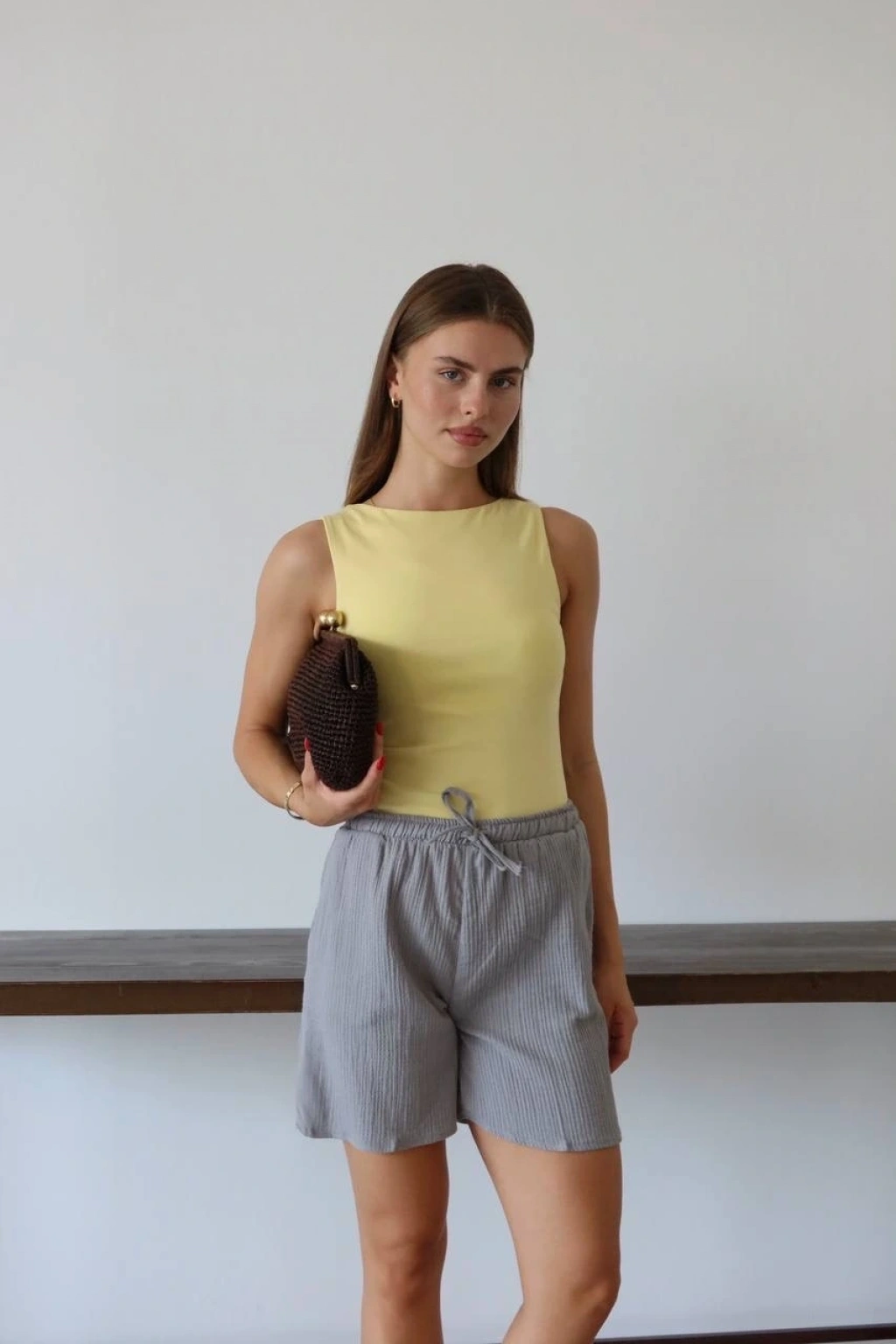 Müslin kumaş şort bağcıklı sarı pt
