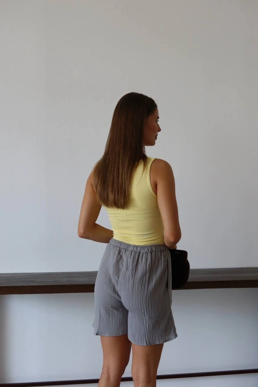 Müslin kumaş şort bağcıklı antrasit pt
