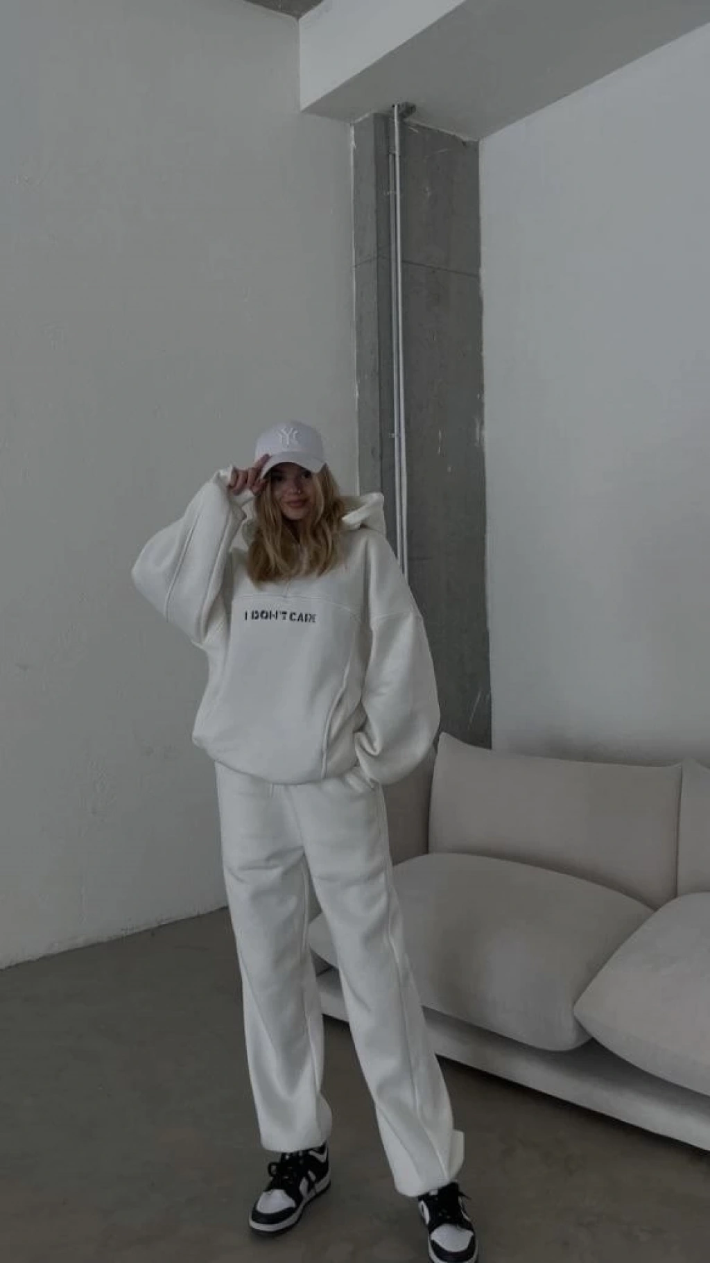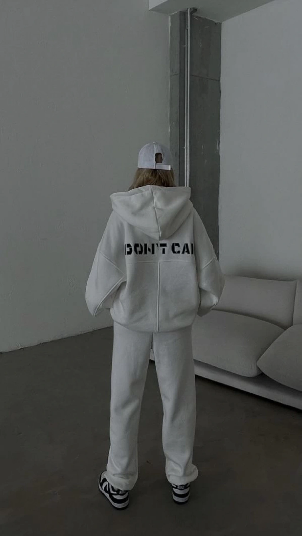 Fermuarlı Eşofman Pantolon İkili Takım - Beyaz