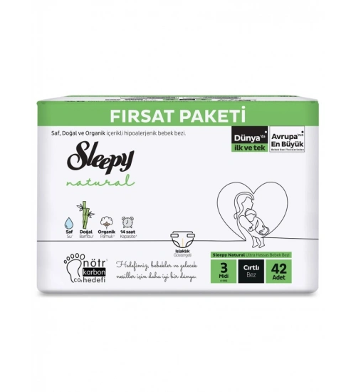 Natural Bebek Bezi Fırsat Paketi 3 Beden 4-9 Kg 42 Adet