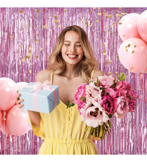 NessiWorld Rose Gold Renk Ekstra Metalize Parlak Saçaklı Arka Fon Perde İthal A Kalite 1x2 Metre
