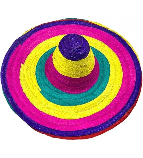 NessiWorld Sombrero Meksika Şapkası Renkli Örme Hasır Yetişkin Boy