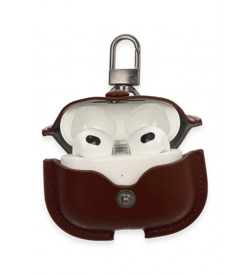 Newface Airpods 3 (3.nesil) Çanta Deri Kılıf - Kahverengi