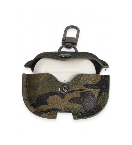 Newface Airpods 3 (3.nesil) Çanta Kamuflaj Deri Kılıf - Haki Yeşil