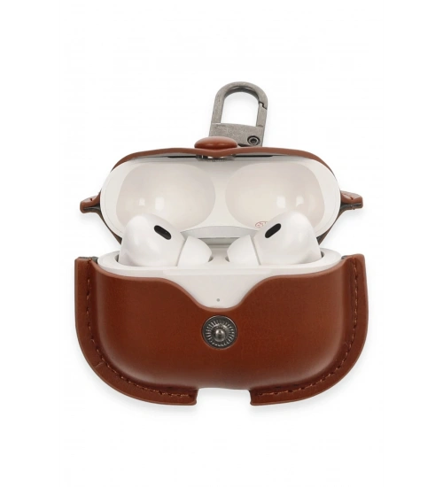 Newface Airpods Pro 2 (2.nesil) Çanta Deri Kılıf - Taba