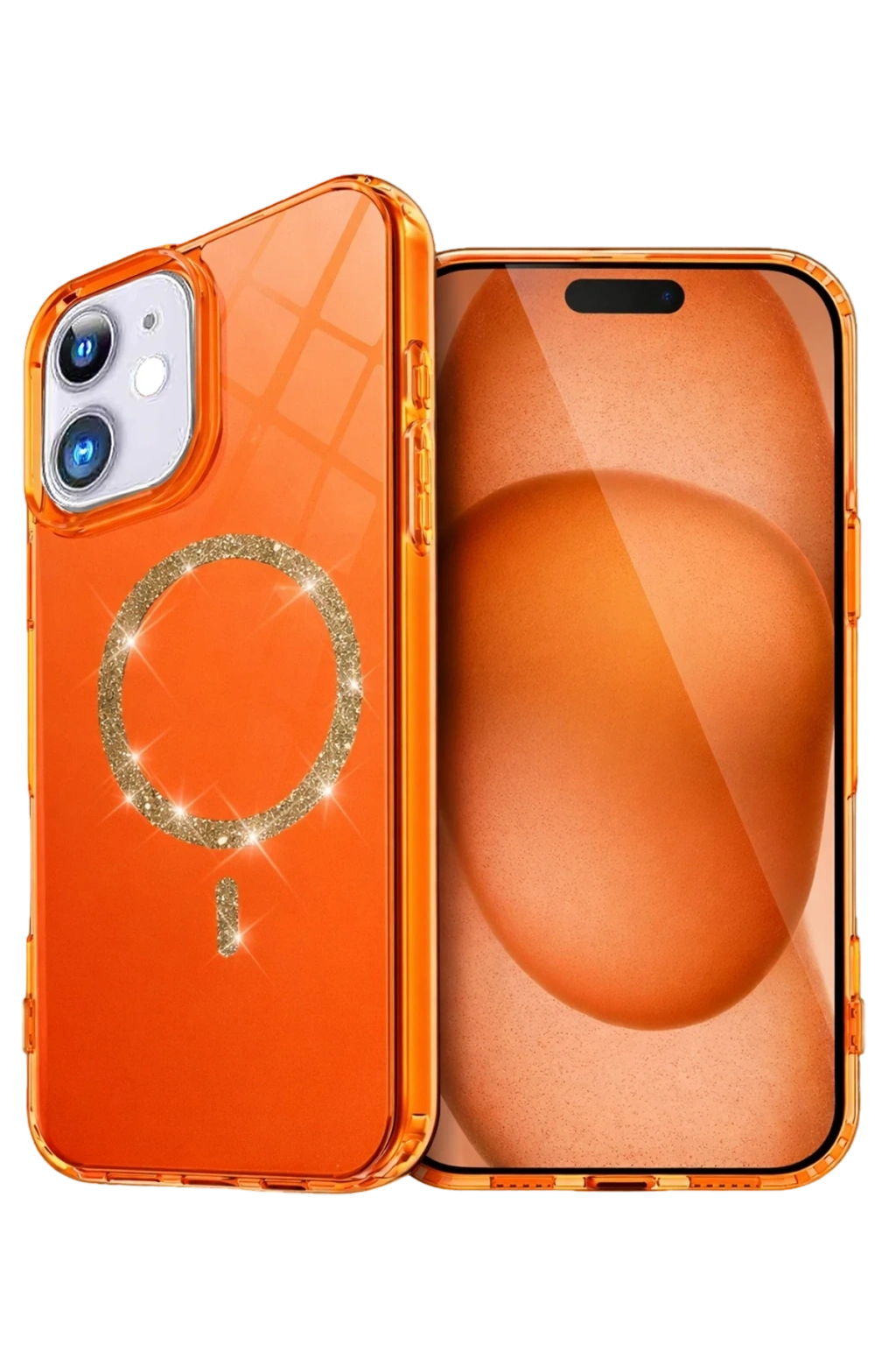Newface Apple iPhone 11 Live Diamond Magsafe Kapak - Turuncu