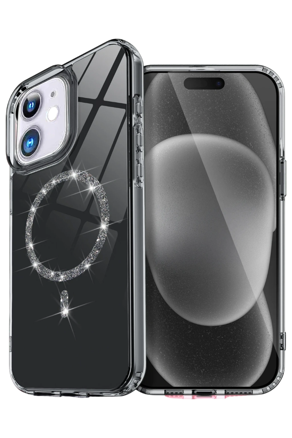 Newface Apple iPhone 12 Live Diamond Magsafe Kapak - Siyah