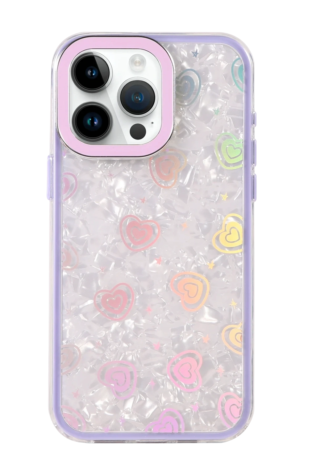 ✅ Kristal şeffaf tasarımı ve renkli kalp desenleriyle şık bir görünüm sunar.