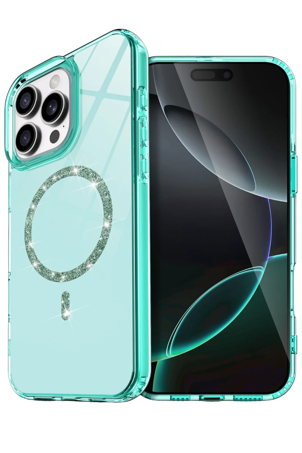 Newface Apple iPhone 15 Pro Max Live Diamond Magsafe Kapak - Yeşil