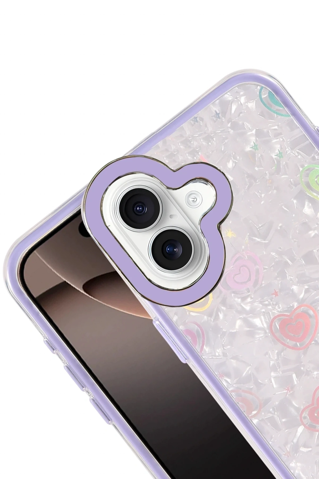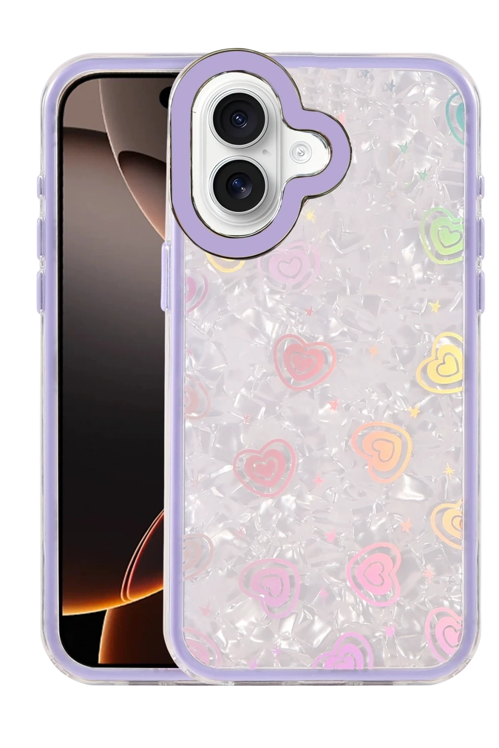 ✅ Kristal şeffaf tasarımı ve renkli kalp desenleriyle şık bir görünüm sunar.