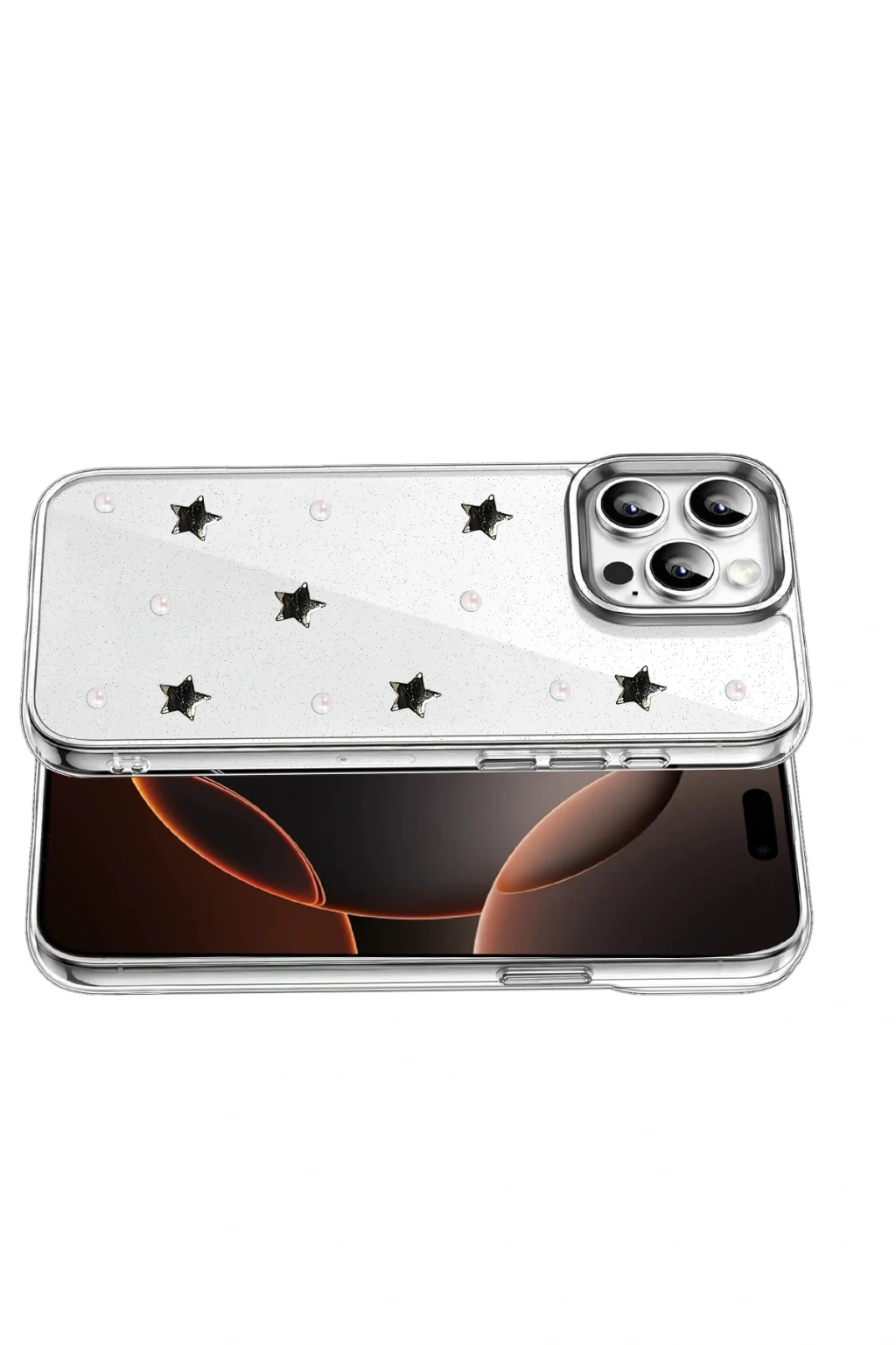 Fiyonk, yıldız, kelebek, lale, çiçek, kalp ve gül gibi zarif detaylarla süslenmiş bu kapak; simli, şeffaf tasarımıyla estetik ve korumayı bir araya getiriyor. Telefonunuzu yalnızca dış etkenlerden korumakla kalmaz, aynı zamanda ona göz alıcı bir stil kazandırır. Günlük kullanımda dikkat çeken tasarımı sayesinde cihazınızın şıklığı öne çıkar.