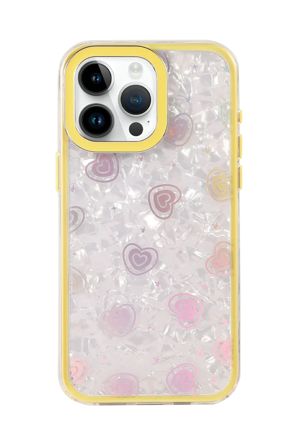 ✅ Kristal şeffaf tasarımı ve renkli kalp desenleriyle şık bir görünüm sunar.