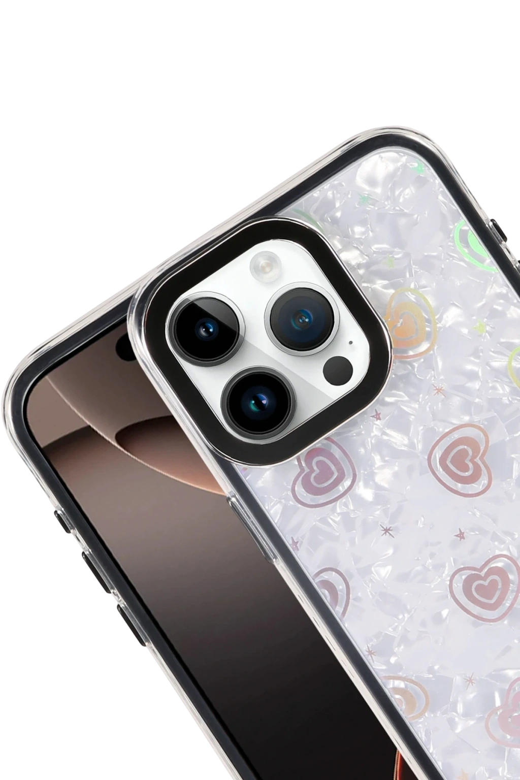 ✅ Kristal şeffaf tasarımı ve renkli kalp desenleriyle şık bir görünüm sunar.