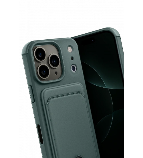 Newface Apple iPhone 17 Pro Max Kelvin Kartvizitli Silikon - Koyu Yeşil
