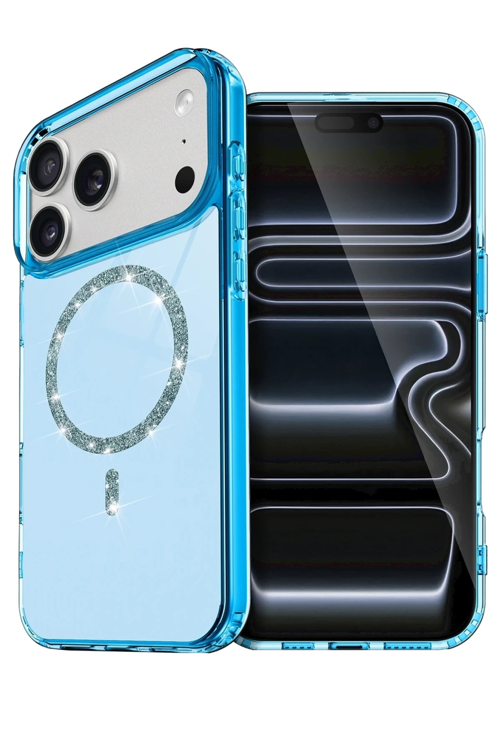 Newface Apple iPhone 17 Pro Max Live Diamond Magsafe Kapak - Mavi